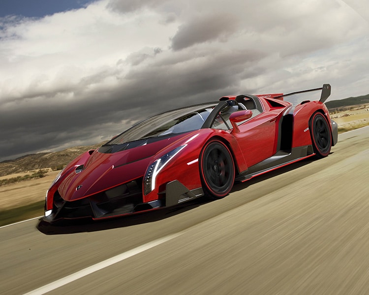 Esta es la ficha técnica del nuevo Veneno: este prototipo Lamborghini, equipado con un motor V12 aspirado de 6,5 litros y una velocidad máxima de 355 km/h, representa la vanguardia del diseño inspirado en la aeronáutica, capaz de hacerle sentir la sensación indescriptible de hacerle volar sobre la carretera.